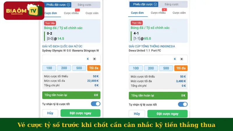 Việc tính tiền thắng thua cũng rất quan trọng trong khi đặt cược tỷ số chính xác. Người chơi cần hiểu rõ mình sẽ được mất như thế nào để cân nhắc về rủi ro, cơ hội thắng trong từng gợi ý biaomtv đưa ra, cụ thể như sau: